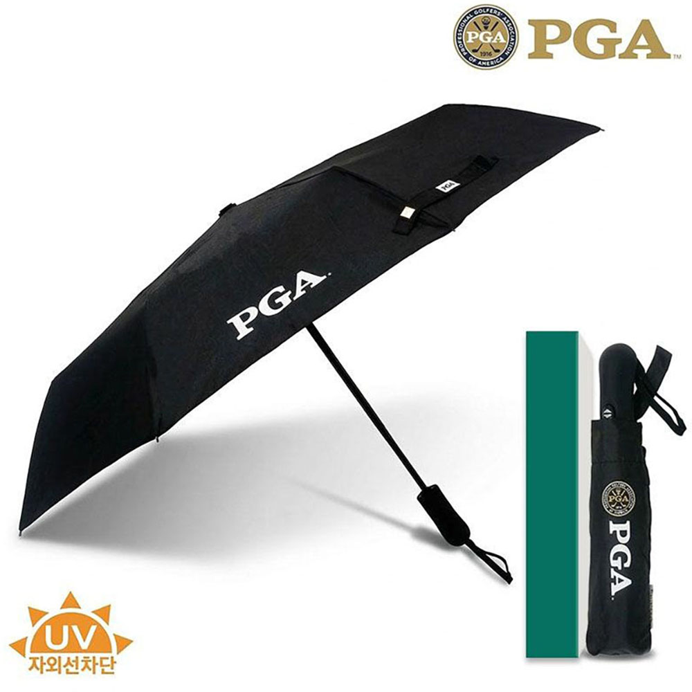 [PGA] 55완전자동3단UV차단우양산(블랙)(손잡이곡선형)1P