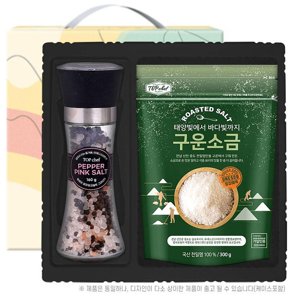 [탑셰프] 스텐롱페퍼핑크솔트그라인더 구운소금300리필(2종)트레이